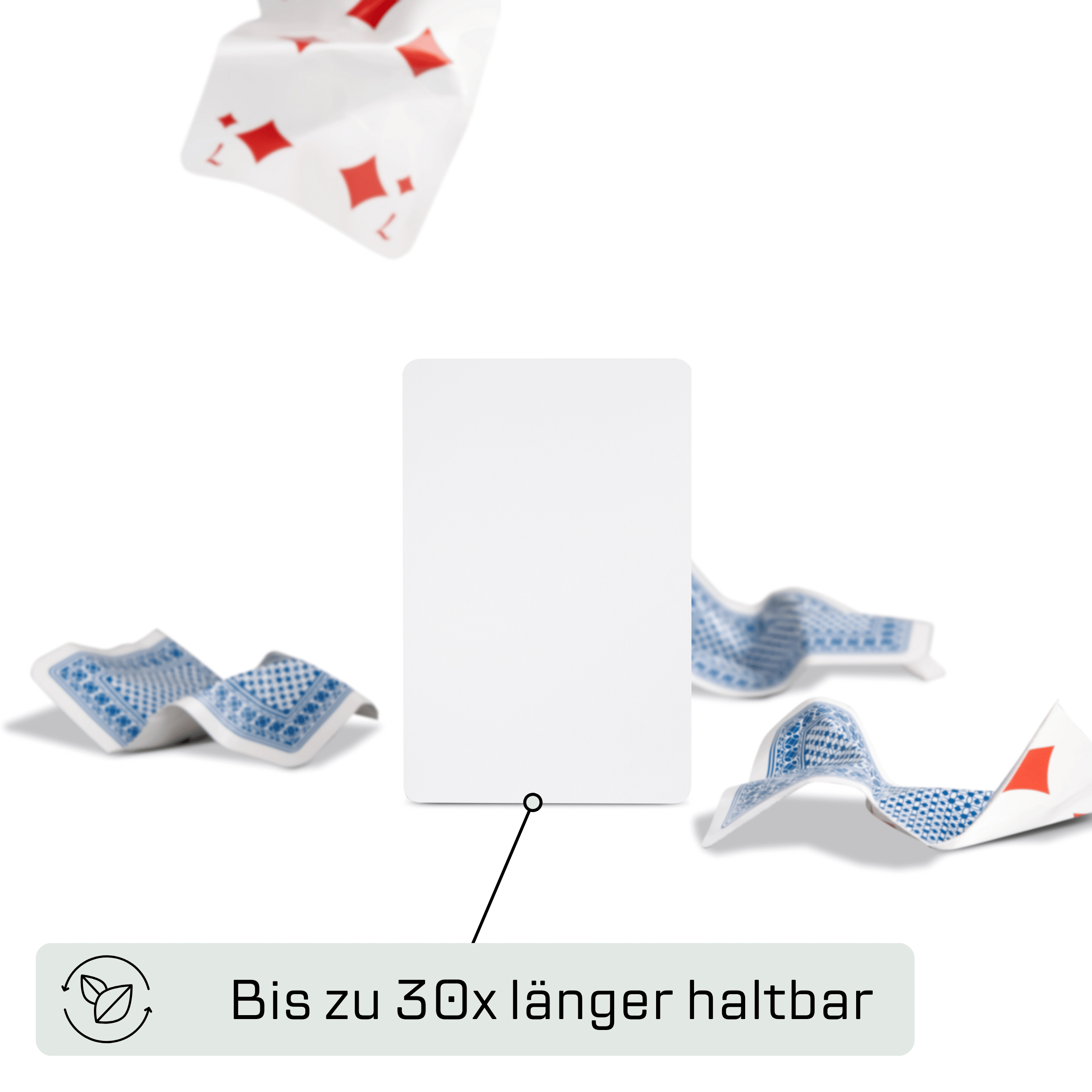 Unsere Spielkarten sind in verschiedenen Materialien erhältlich, z. B. Kunststoff und Leinen, oder auch als ökologische Spielkarten mit lebensmittelechten Farben – umweltfreundlich und klimaneutral gedruckt.